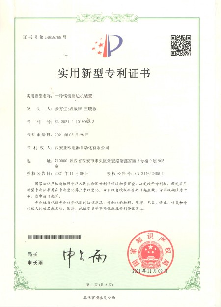 - 關(guān)于我們 - 資質(zhì)榮譽(yù) - 一種鎂錠磨邊機(jī)裝置專利