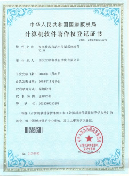 - 關(guān)于我們 - 資質(zhì)榮譽 - 恒壓供水啟動柜控制系統(tǒng)軟件